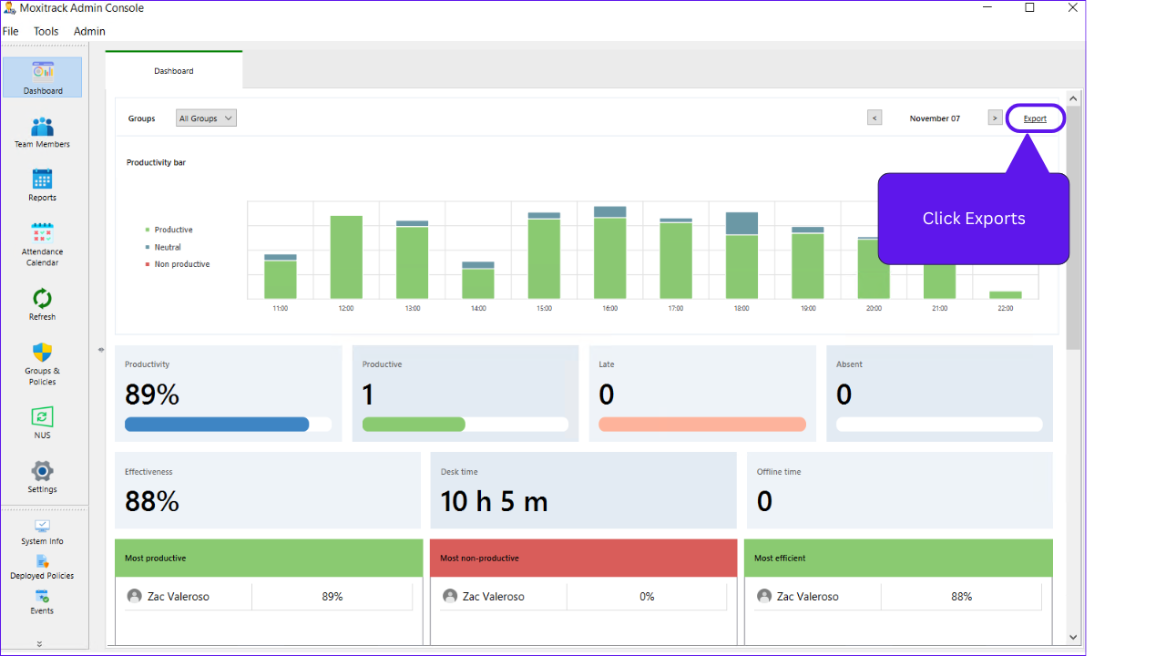 Step 2: On the right corner of the console click the “Exports”.