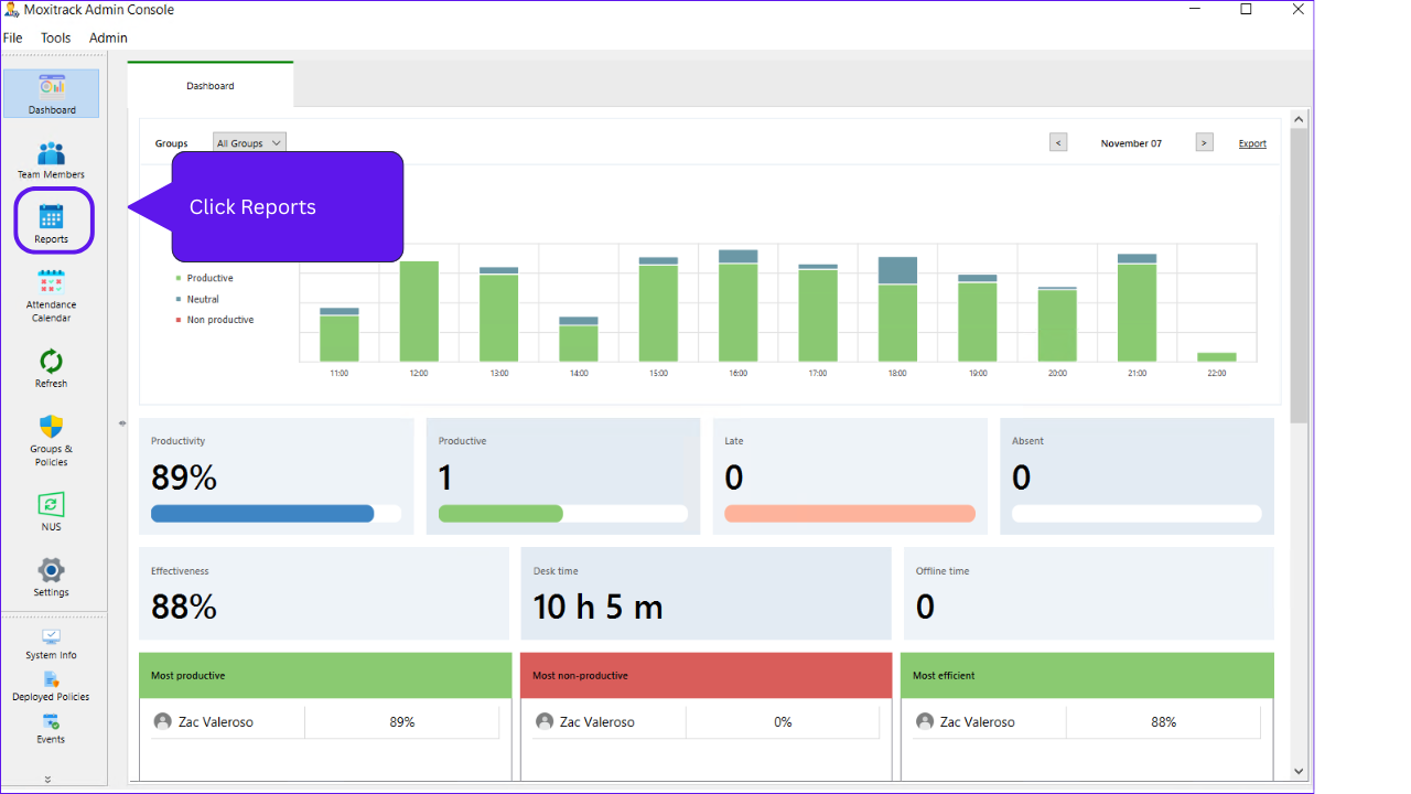 Step 1: Click the “Reports” that is shown on the left corner of the console.